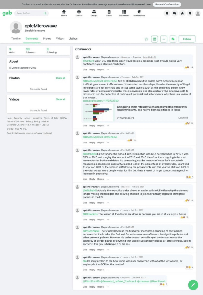 - However, the FBI’s request to Gab specifically identified Thomas Matthew Crooks’s account as “epicMicrowave,” which had posted comments completely opposite to what the FBI told Congress. Moreover, Crooks donated $15 to a progressive PAC on January 20, 2021, and posted comments supporting Joe Biden’s border policies on Gab just weeks later, in early February 2021.