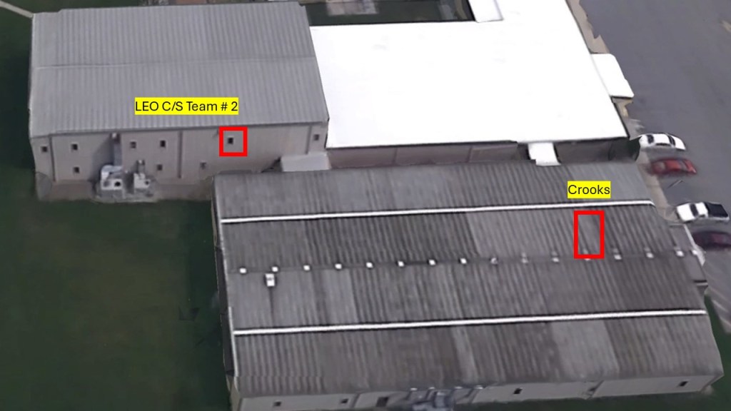 - 1714 – One of the Local LEO C/S Teams took a picture of Crooks, in the vicinity of the AGR International building, using his range finder, but was unable to locate him again, and unable to determine if he was armed.