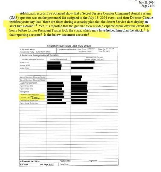 - Director Cheatle stated that there were no USSS drone assets available for the event, and none were present. This was later proven to be a lie via documentary evidence.